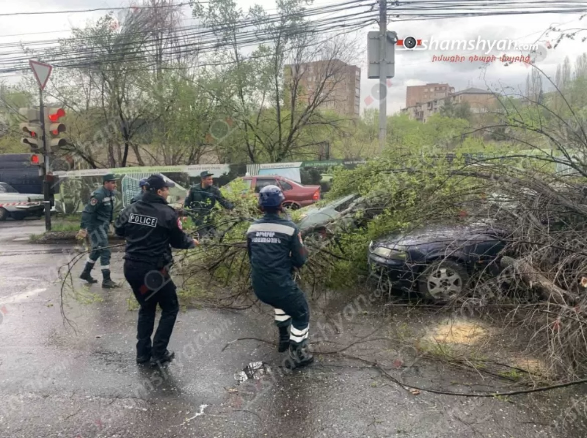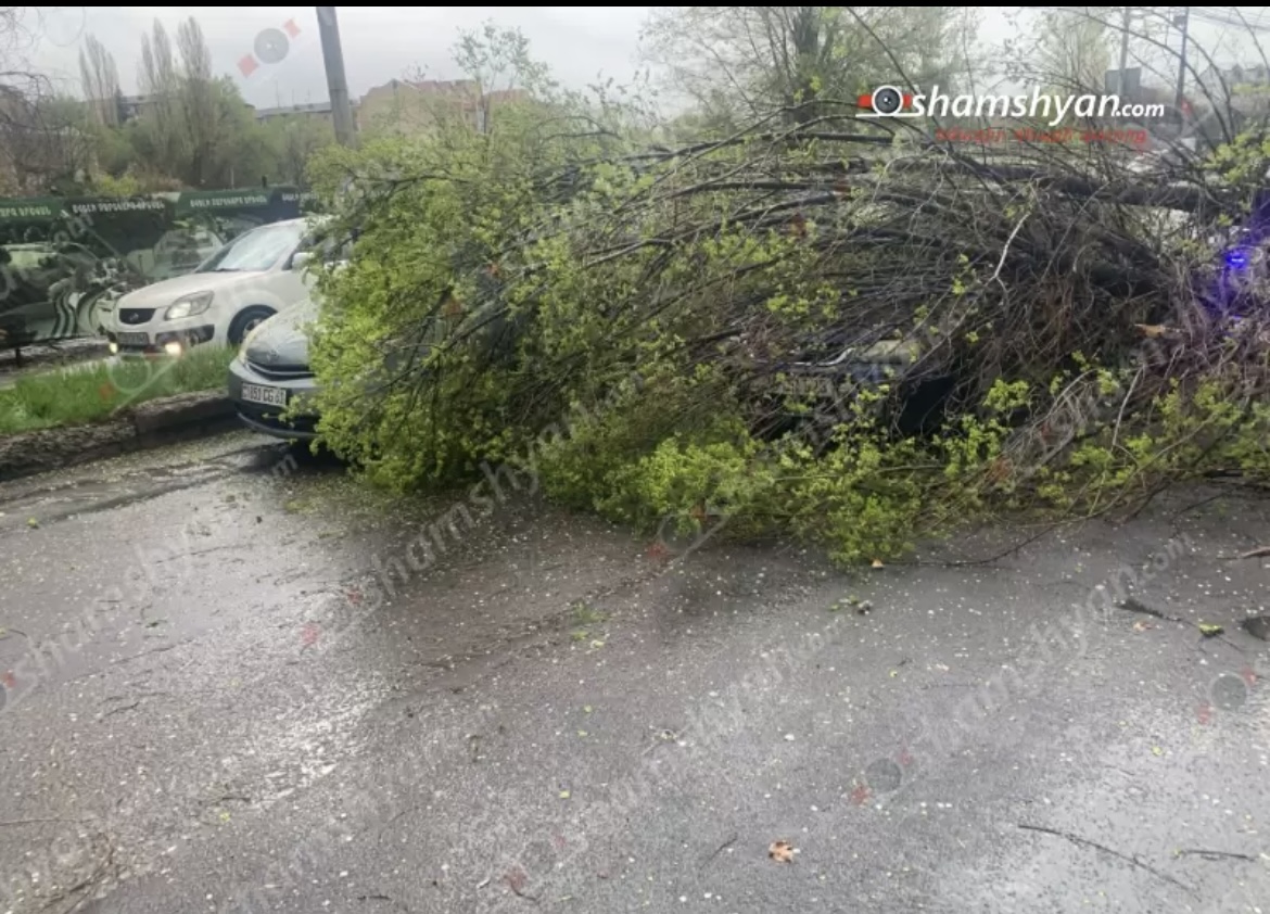 ՖՈՏՈ. ՎԻԴԵՈ. Կադրեր, թե ինչպես է ուժեղ քամին ծառը պոկել ու շպրտել մեքենաների վրա