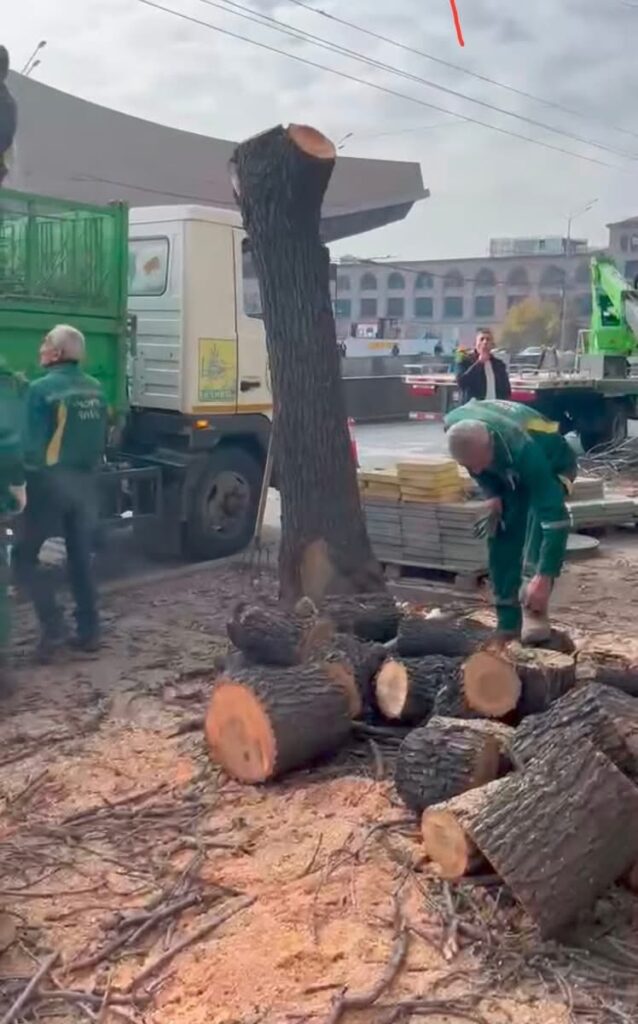 «Հարգելիներս, այս չքնաղ հացենիները ՀՈԱԿ-ի վաստակաշատ մասնագետները օրերս հատեցին։ Ո՞ր իրավական ակտով են հատվել ծառերը, մենք պետության մեջ ենք, թե՞ կամայականների լծի տակ։ Հատուկ տեղադրում եմ էջիս վիդեոյի ֆոտո կադրերը, ոչ մի վնասվածք այս ծառերը չունեն, փաստ է, որ առողջ և ամուր բույսեր էին, հատման որոշումը՝ հանցանք։ Մեկ պարզ բան չեն հասկանում, որ նույնիսկ փոխարինող նորատունկերին պաշտպանել է պետք և հասուն ծառերը և ջուրն էին արմատներով մակերես բարձրացնելու և արևից ստվերացնեին…