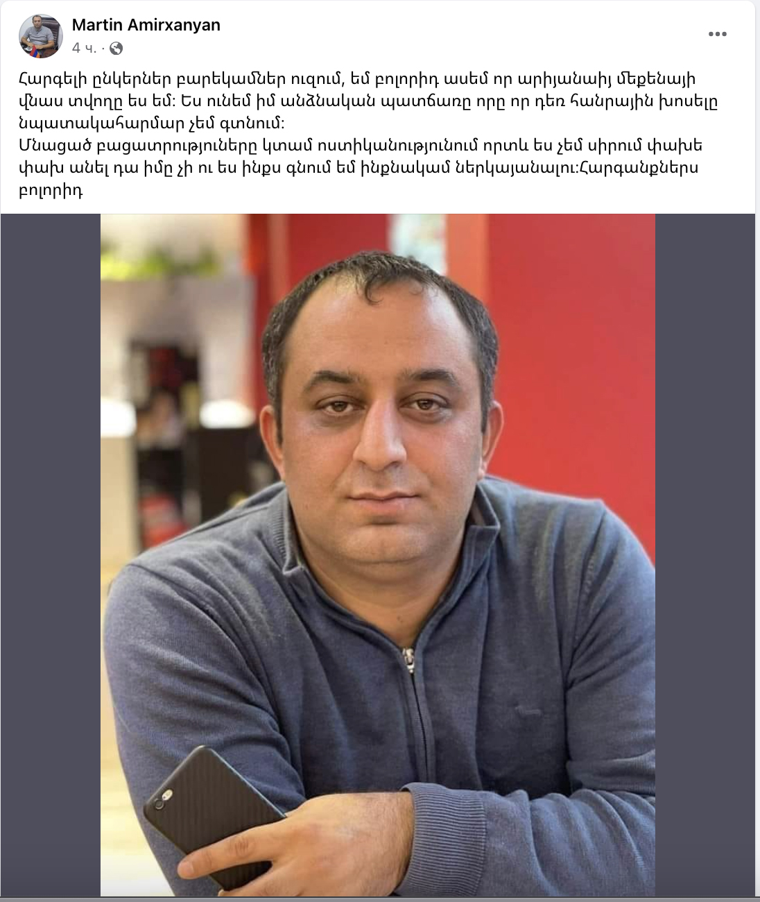 Մոտեցավ, բա ով իմ ընկերոջ… Ալեն Սիմոնյանը` այսօրվա միջադեպի մասին